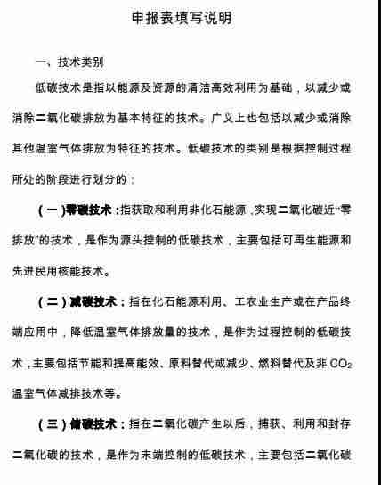 电力、钢铁、有色、建材、煤炭、石化、化工、纺织、食品、造纸、机械、家电、新能源等工业领域,以及建筑、交通运输、农业、土地利用变化和林业、废弃物处理等领域的低碳技术,可以是单一技术、产品、装备、工艺流程或系统性工程技术等。